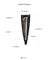 The Slimmy R1S1 (78mm) in the black colorway with white stitching eliminates excess layers for maximum slimness (4mm) and designed to perfectly fit credit cards and your ID. The center pocket provides fast access to cash and cards. Side slots accommodate less used cards and create tension to keep things tight.