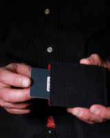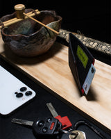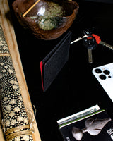 Slimmy T1SO BRED's all-black exterior, bright red liner, and Yamanote Green label define the vibrancy and mystery of Tokyo nightlife. A technical minimalist wallet employing military grade materials and a proprietary bonding process, T1SO is built to last.